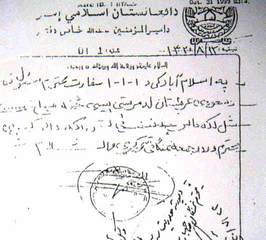 به مسئول محترم سفارت امارت اسلامی افغانستان در اسلام آباد
