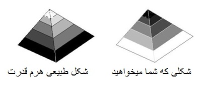 تبصره: بلی، شما شاید درست بگویید بشرطی که باز هم ISI و سرمایۀ عربی وو... دست به دست هم بدهند و بخواهند شب را بر روز حاکم کنند. مشت و دروش برابر نیست. اما اگر شما و قبیلۀ تان به تنهایی باشید مطمئن باشید که حالا حتی پشتون های متمدن، که الحمد لله در بین شما هم اکثریت دارند طرفدار آن چنان هرم قدرتی نمی باشند که شماش میخواهید. تا چه رسد به تاجیکان و اوزبیکان و هزارهها و ترکمانان و غیره. هرگاه، برفرض، ISI باز هم در تبانی با ریال و پوند و دالر و حرص تیل و غیره، موفق به آنچه شما میخواهید گردد: شکل آن هرم، ازشکل طبیعی هرم قدرت، در بین انسان ها، اندکی متفاوت خواهد بود. بنگرید:
