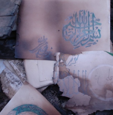 قرار گزارش یکی از افسر اردوی ملی در مسله اتش زدن قران توسط امریکایی ها کاسه زیر نیم کاسه بوده است. ایشان گفت این کار توسط یکی از سرباز اردوی ملی که احتمال به دستور طالبان بوده است این سراباز با سرباز خارجی کاعز باطله را جمع اوری نموده برای اتش زدن و سرباز افغان جزوه از قران را خود اتش زده و به مردم ابلاغ نموده که سرباز امریکا چنین کاررا کرده است مردم بدون تحقیق دست به خشونت زده و قومندان ایساف هم نا اگاهانه عزر خواسته است . یکی از سرباز افغان