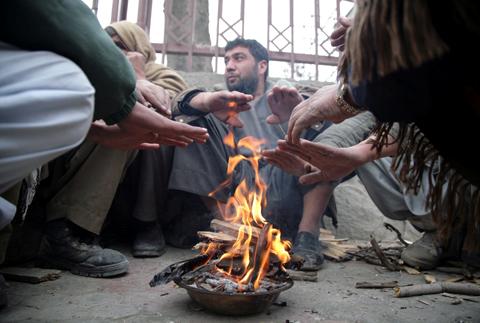A group of daily workers gathered in the Park-i-Zarnegar area of Kabul City.
