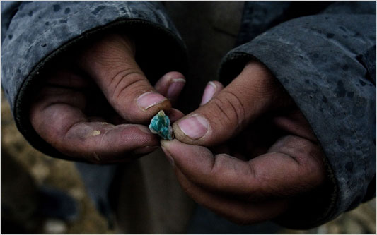 آن هنگام، اکتوبر 2007 بود و آقای جاوید ازمیان نسل جدید افغان های بود که زندگی خود را از طریق ایجاد سوراخ در کوه ها جهت تصاحب سنگ های قیمتی افغانستان می ساخت.