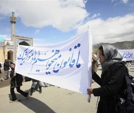 ما زنان افغان امروز" 26 حمل 1388" گردهم آمده ایم، تا اعتراض خویش را برعلیه موادی از قانون احوال شخصیه اهل تشیع، که در آنها به کرامت انسانی زنان توهین گردیده است اعلام کنیم و از ریاست جمهوری، شورای ملی، وزارت عدلیه، سازمان ها و نهادهای بین المللی و دیگر مراجع ذیربط، موارد زیر را خواهانیم.