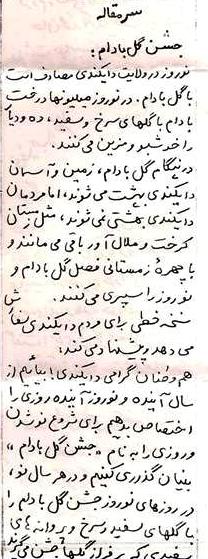 ابوسعید نوشته بود که هموطنان گرامی دايکندی! بياييد از سال آينده و از نوروز آينده، روزی را اختصاص بدهيم برای شروع نو شدن و روزی را برای " جشن گل بادام".