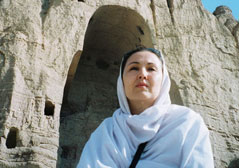 Zareen Taj visiting Bamiyan, in front of the Budda statues that had been blown up by the Taliban.