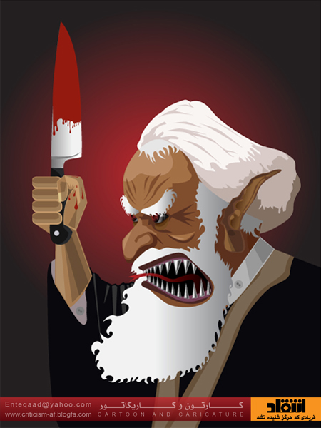 دراین کاری کاتور چهره اصلی این شیخ خون خوار افشا گردیده است تشکر از کسی که این کاری کاتور را ترسیم نموده است
