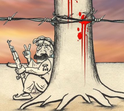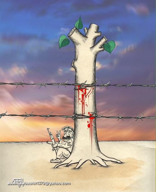 بچه ازاره بچم از کارتون ات خوش ام امد لیکن شما از مضمون کارتون تان غافل مانده ای سیم خار تار طرف جنوب اس و مجاهدین طرف شمال است و در پشت درخت سنگر گرفته این کارتون یاد اور جنگ و عقب نشینی شهید مسعود را بیشتر بیان میکنه شاید که نفر پشت درخت خود شهید مسعود باشه که د پیروزی امید وار اس درخت قطع شده ام یاد اور زمان است که طالبان کرام تمام درخت های شمالی را قطع میکدن تا شورای نظار نتوانه د بین درخت های طاک سنگر بیگیره خو بهر صورت از اینکه از کار شورای نظار نااگاهانه دفاع کرده اید کار خوبی است چرا که مسعود تنها کسی بود که در مقابل روس ایستاد شد و تااخر سر سازش و تسلیم را فرود ناورد