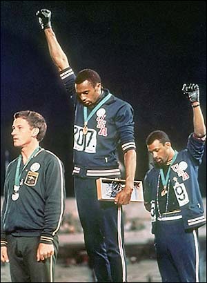سال 1968 است و مسابقات المپیک جریان دارد. تومی اسمیت و جان کارلوس برنده مسابقات دوش اند و بر سکوی افتخار ایستاده اند: با دستکش های سیاه، با پا های برهنه، با مشت های افراشته و بلند ولی با سرهای افکنده که فقر سیاهان امریکا و قدرت آنان را به شکل نمادین نشان می دهد.