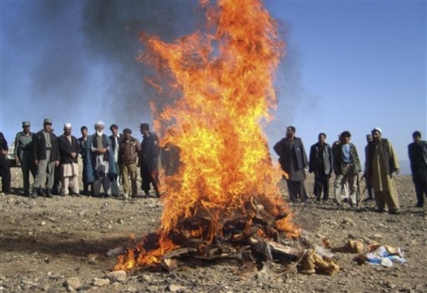 چهار و نیم کیلو از هزاران تُن مواد مخدر افغانستان در خوست به آتش کشیده شد
