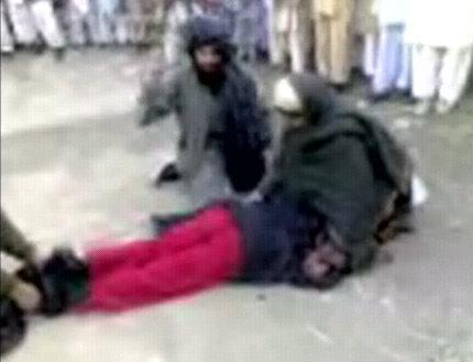 اما وقتی مردم تابع سلطنت اهریمن می گردند، پیروان ابلیس، زن را که خداوند به اوبه مثابۀ اولین تربیت دهندۀ انسان یکی از صفات خویش ( آموزگار) را اعطا نموده است این چنین رفتار می نمایند، به عکس شماره 2 نگاه کنید که زنی را به جرم بیرون رفتن از خانه در بازار ( دره) می زنند.
