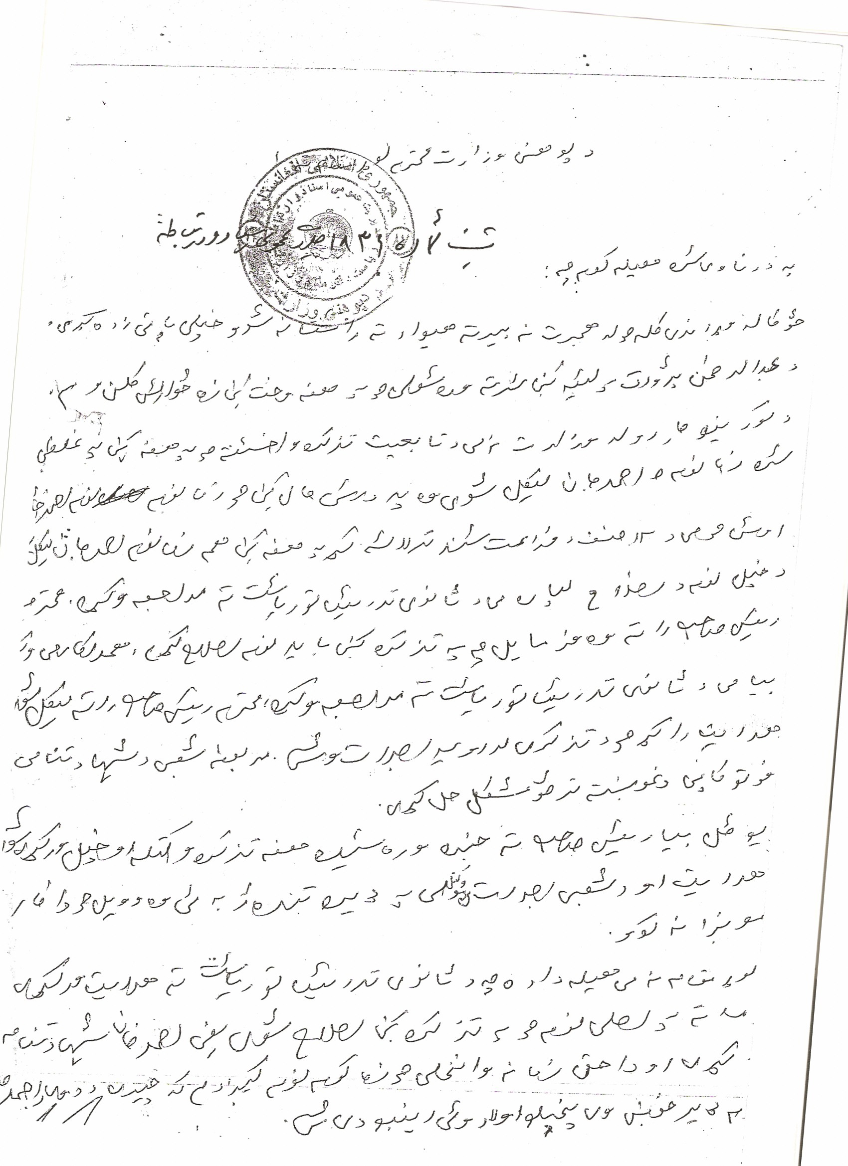 بیشک رئیس صاحب ، خداوند هفت پشت شما را بیآمورزه کتی همی پیشنهاد تان . باوجودیکه یک حکم غیر قانونی وزیر بی معرفته گرفتین ، باز هم آرام شیشته کار غیر قانونی ره نکردین ! مرحبا مادر تان را که به شما شیر داده !