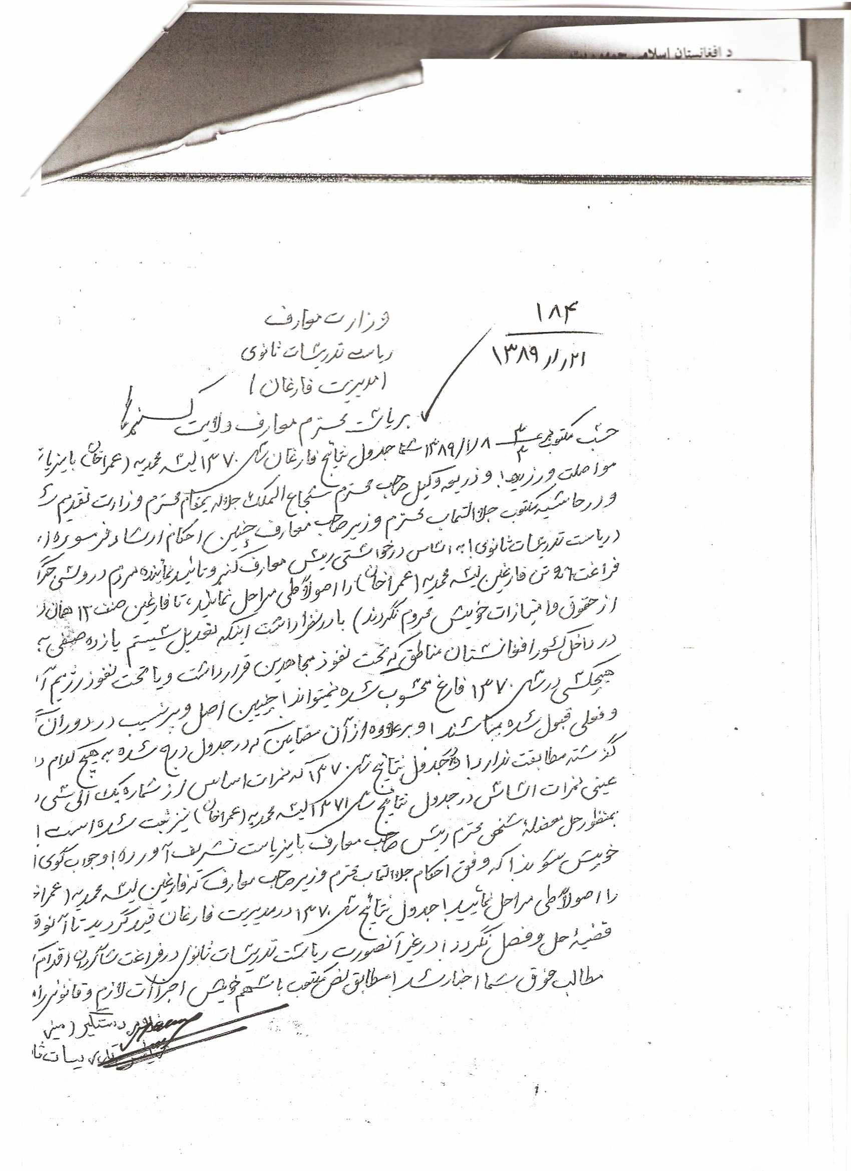 اوبیادرا ! اولأ ،همی رئیس صاحب تدریسات ثانوی ، پیشنهاد خوده چاپ کده که وزیر صاحب خانده بتانه و کته کته نوشته کده که ، ده سال 1370 شاگردای شاری و قشلاقی تا صنف یازده درس میخاندن و ای تارتق های کوس کنری صنف دوازده ره ده کوجای بوبوی شان خاندین که حالی مه تصدیق کنوم ؟
