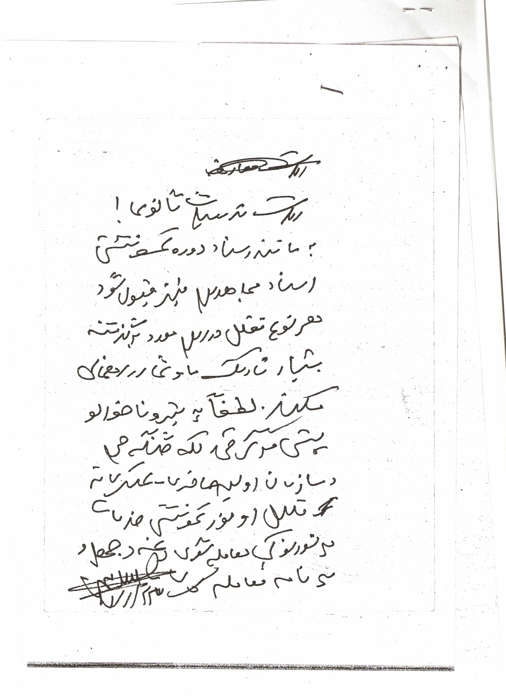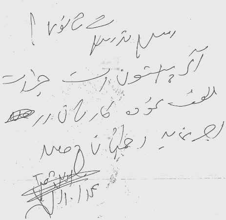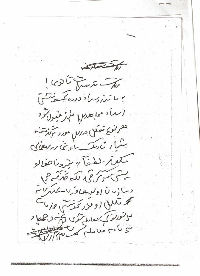 ولا که همی میرهزار ام بلا میکنه که ای اسناد وزارت معارف پیدا کده ، شفترای وزیر و رئیس هایشه میکشه . میگوفتن که : خطی دارم که کور میخانه ولی جور بزور میخانه ! مه بیچاره کمسواد (کور) که احکام نتانستوم بخانوم ای رئیسای (جور) چطو میتانن بخانن ، بلا میکنن ، بخدا که بلا میکنن !