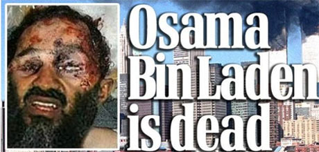 تصویری که از جسد بن لادن توسط تلویزیون های پاکستانی نشر شده و به سرعت در رسانه های مختلف دنیا بويژه رسانه های انگلیسی به نشر رسید، جعلی می باشد. روزنامه های میل، تایمز، تلگراف، سان و میرور این عکس را در صفحه نخست وب سایت های خود نشر کرده بودند که پس از مشخص شدن جعلی بودن آن، تصویر را حذف نمودند. به گزارش گاردین، این تصویر جعلی دو سال پیش در 29 اپریل 2009 در میدل ایست آنلاین نشر شده بود.