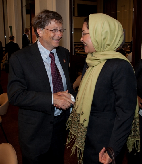 Bill Gates meets with H.E. Dr Dalil Suraya, Minister of Public Health, Afghanistan to discuss childhood immunization in Afghanistan at the World Health Assembly, Geneva, Switzerland, 17 May 2011.