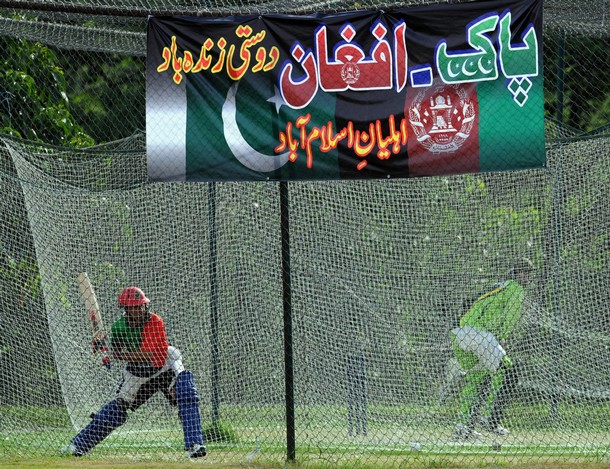 تمرینات تیم کریکت افغانستان با شعار "پاک- افغان" دوستی زنده باد