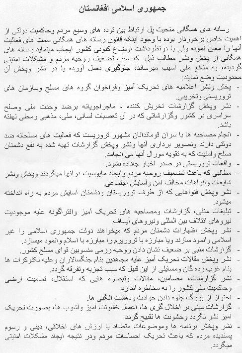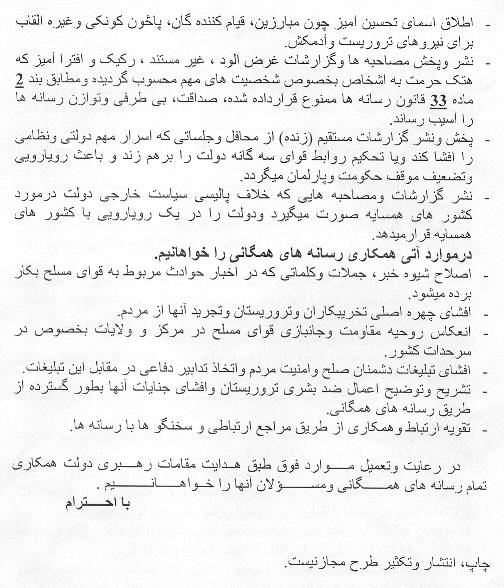 2_نشر گزارشات و محاصبه هایکه که خلاف پالیسی دولت در مورد کشور های همسایه صورت میگیرد...