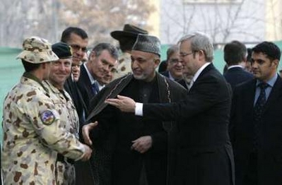 کابل 22 دسمبر: کوين رود نخست وزير استراليا با حامد کرزی در ارگ