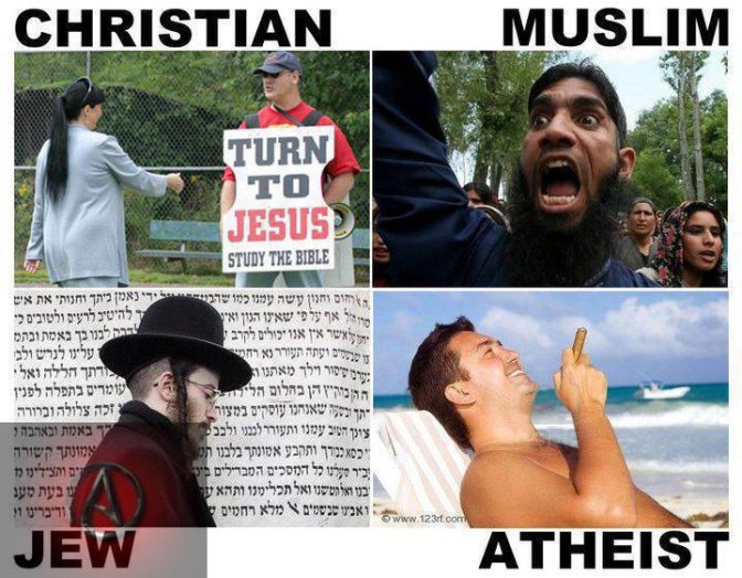 ادیان ابراهیمی تفاوت چندانی با یکدیگر ندارند زیرا یکی از روی دیگر کاپی برداری شده منتها در بین شان عیسویت یکمی اخلاقی تر است و آنهم شاید به این دلیل باشد که حضرت عیسی هیچوقت قدرت سیاسی را بدست گرفته نتوانست اگرنی خدا میفهمد که چی کار ها میکرد طوریکه در ابتدا حضرت محمد نیز بسیار یک آدم خوب و نرم بود، آیات قرآن تمامآ از آزادی و بی غرضی حرف میزد ولی در مدت 13 سیزده سال با این استراتیژی به جز از 83 نفر که خویشان و نزدیکانش بود دیگر کسی به وی ایمان نیاورد و مجبور شد از مکه به مدینه برود و درآنجا به تاراج کاروان های تجارتی شروع کرد و پیروانانش به هزاران نفر رسید و قدرت پیدا کرد که بعد از آن حضرت محمد دیگر آن آدم نرم، روف و مهربان سابق نبود و آیات قرآن نیز دیگر از مهربانی و آزادی حرف نمیزد بلکه گپ از قتل، تجاوز به زنان و برده گرفتن کودکان میزد.