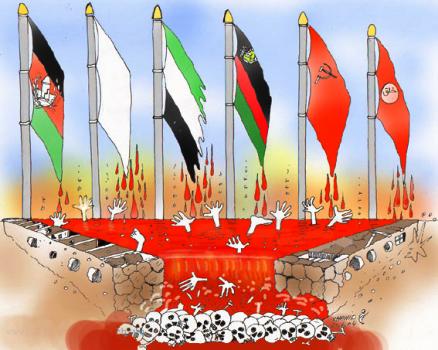 در ارتباط به توصیه تان به آقای شاهد که در قسمت دقت در ترسیم کارتون هایشان نموده بودید می خواهم بعرض برسانم که شاید مقصد شان از ترسیم بیرق ها قرار ذیل باشد: