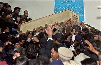 من از شنیدن خبر مرگ کسی خرسند نمیشوم. اما نمیتوانمکارکردهای افراد را ازیاد ببرم.بی نظیر حامی کسانی بود که امروز او را ترور کردند. این سیاستمدار های پاکستانی همانند بنیادگرایان و رهبران جهادی افغانی با سازمانهای استخباراتی غرب از یکسو و با شبکه های ترور جهانی از سوی دیگر در پیوند اند.بازیهای چند گانه در سیاستهای بزرگ، خطرناک است و پیامد آن همین است که بی نظیر چشید.