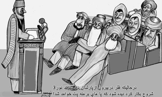 تصور نکنيد که اين خبر با گپ خانم ملالی جويا که پارلمان را طويله خانه خوانده بود ارتباطی دارد. بلکه هيچ ارتباطی ندارد و شما مستقيم می توانيد آدرس نشنال اسمبلی دات گاو دات ای اف را تايپ کرده و متوجه شويد که در روز آغاز بکار پارلمان افغانستان پس از يک دوره تعطيلی، سايت رسمی آن کار نمی کند. شايد هم علت همان چيزی باشد که در کارتون آقای عتيق شاهد رسم شده است.