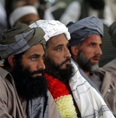 آزادی زندانیان طالب در حضور قاچاقچی مواد مخدر و بولدوزر حامد کرزی